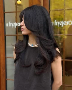 W 2026 roku grzywka ma lekką, miękką formę i naturalnie wtapia się w resztę fryzury. Pasma lekko się rozchodzą na boki, przez co nie tworzą wyraźnej linii, lecz subtelnie modelują twarz – dzięki temu grzywka łagodzi rysy i przyciąga uwagę do oczu. Jeśli jest dobrze obcięta, nie wymaga długiego układania i poprawiania w ciągu dnia.